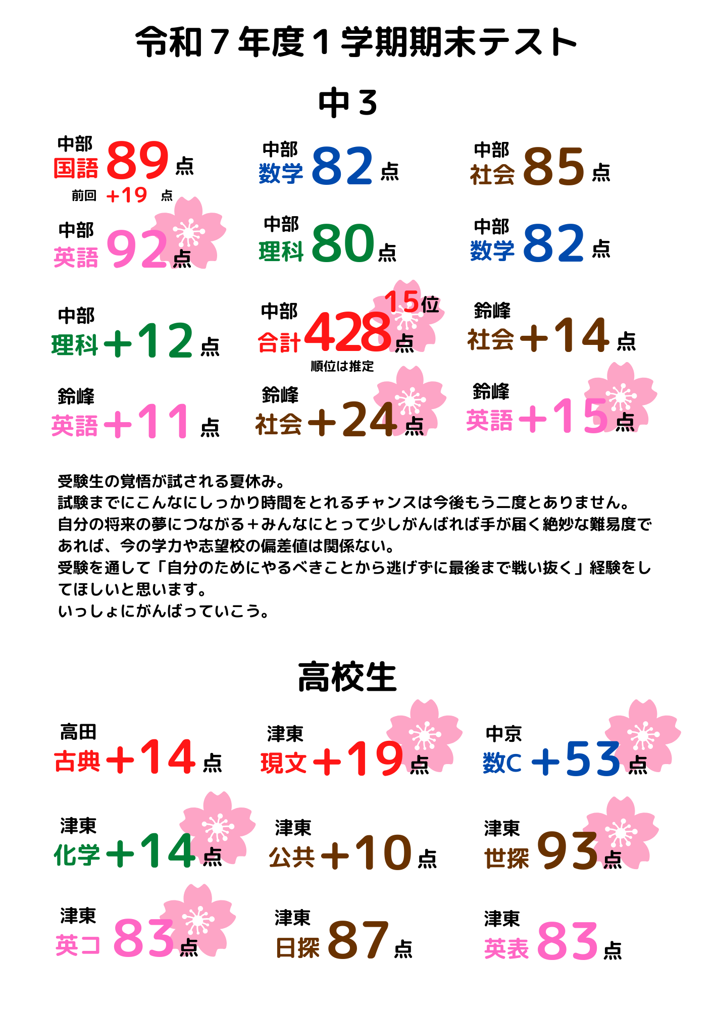 授業報告書を通して保護者様にも共有し「全員で受験に挑む」感覚を大事にしていきます。