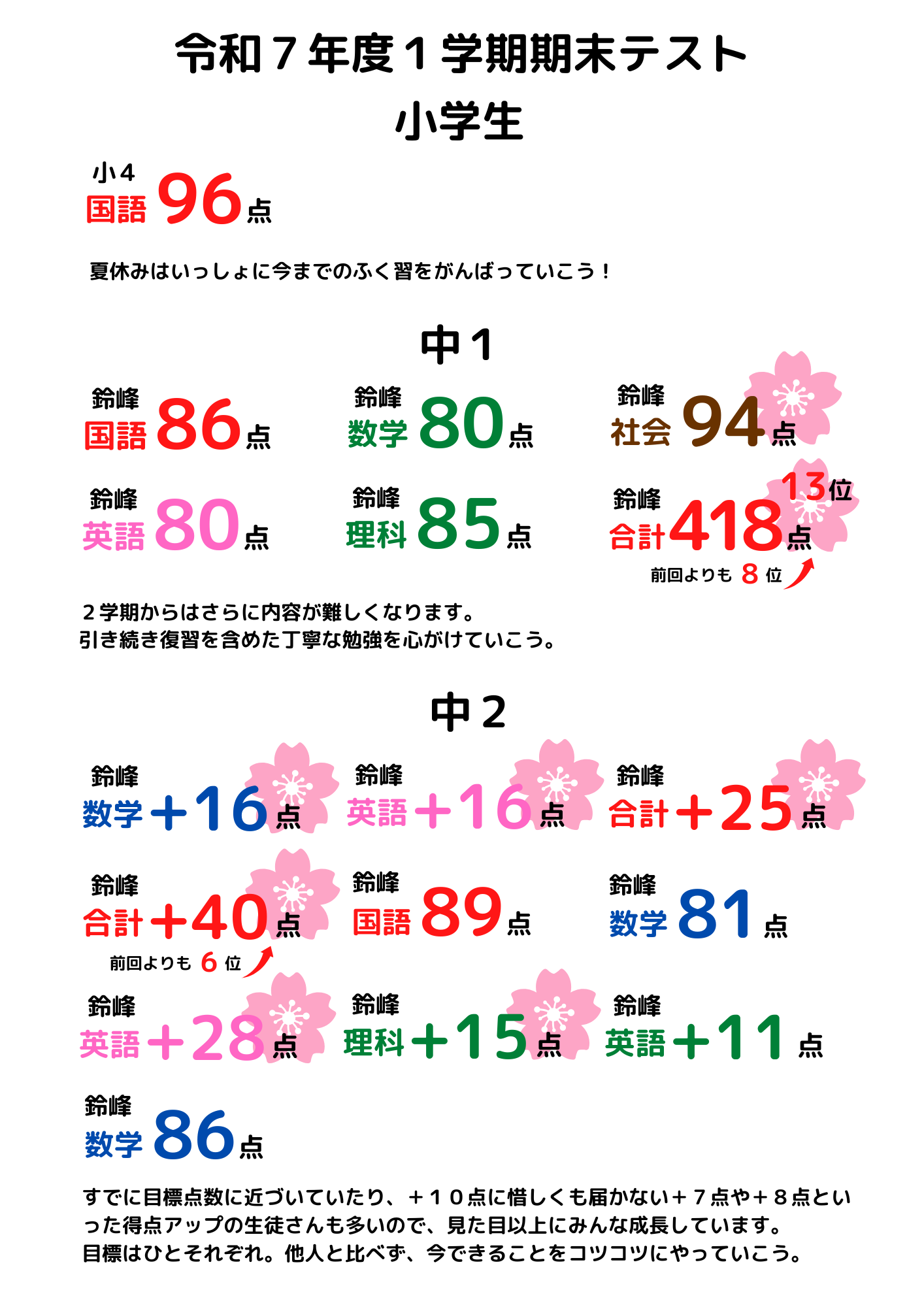 | 小学生 | 中学生 | 高1・2 (オンライン通塾可) |